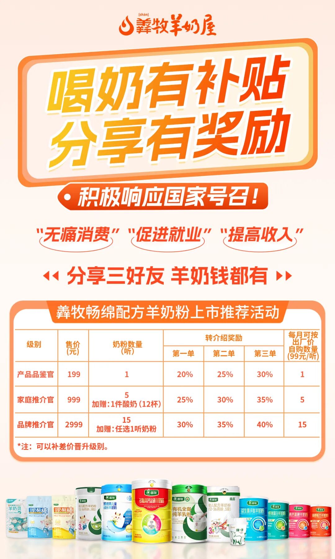 “喝奶有补贴,分享有奖励”。成为羴牧产品品鉴官或家庭推介官或品牌推介官,不仅可以攒出家里的奶粉钱,还能获得一份稳定又轻松的副业收入。