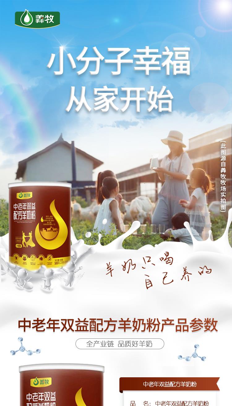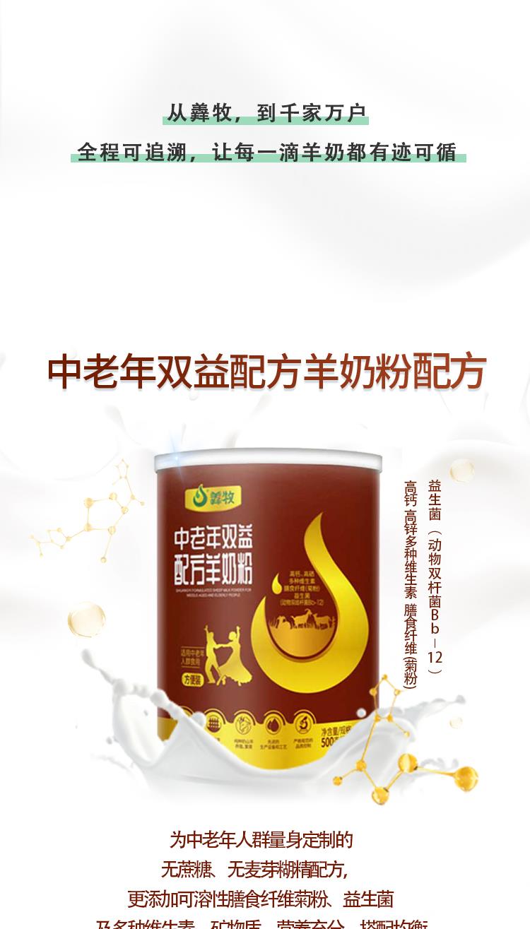 羴牧 羊奶粉 成人全脂高钙羊奶粉 中老年双益配方羊奶粉500g 25g*20条 中年老人菊粉无蔗糖 (25克*20条)
