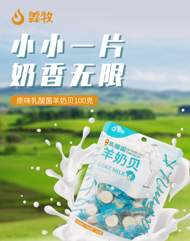 羴牧 奶片 原味乳酸菌羊奶贝学生儿童休闲零食100g独立小包装 原味乳酸菌羊奶贝100克